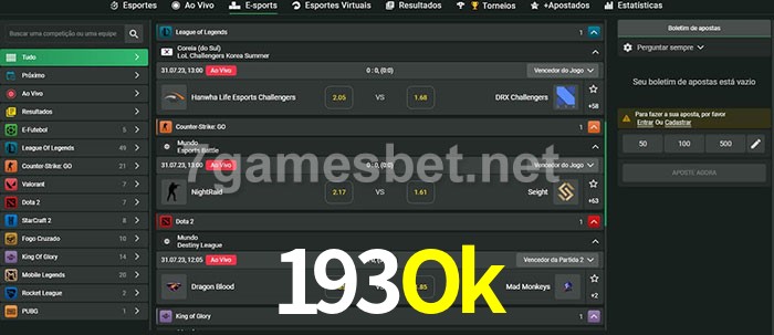 O 193Ok oferece uma grande seleção de opções de apostas em e-sports com probabilidades competitivas